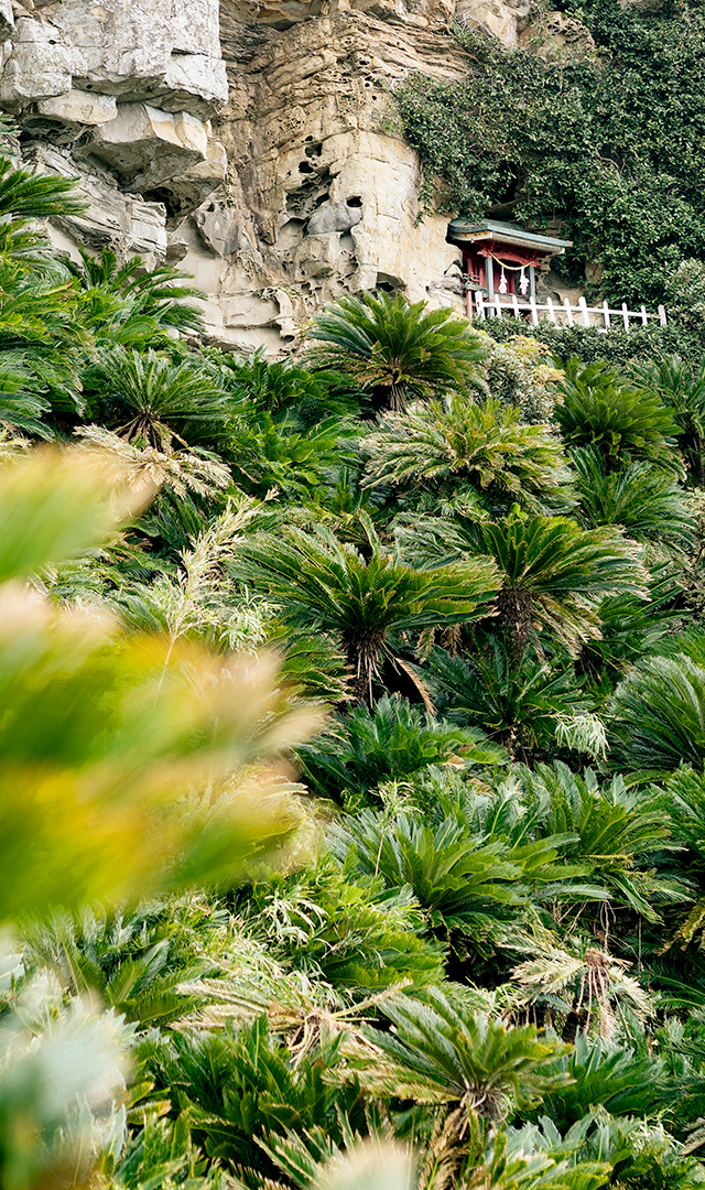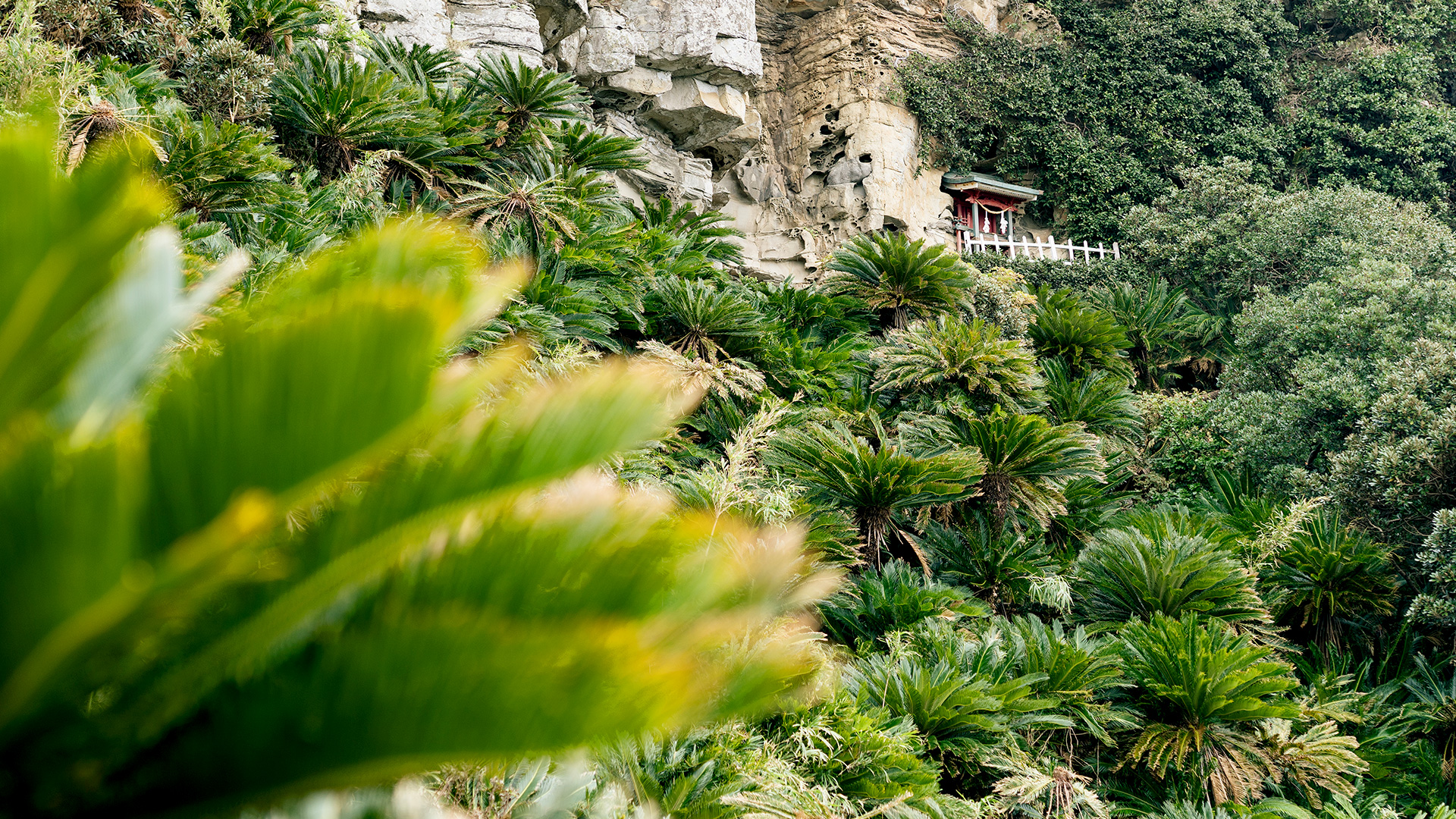 都井岬の最先端。世にも珍しい断崖絶壁にある神社。 0987-72-0479(串間市観光物産協会) 串間市大納(都井岬内) Located at the tip of Cape Toi, this shrine is extremely unusual for its location on a steep cliff. Ono,Kushima-shi