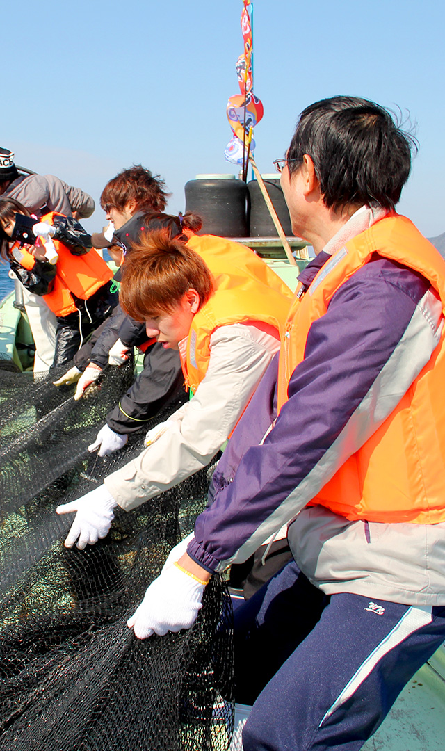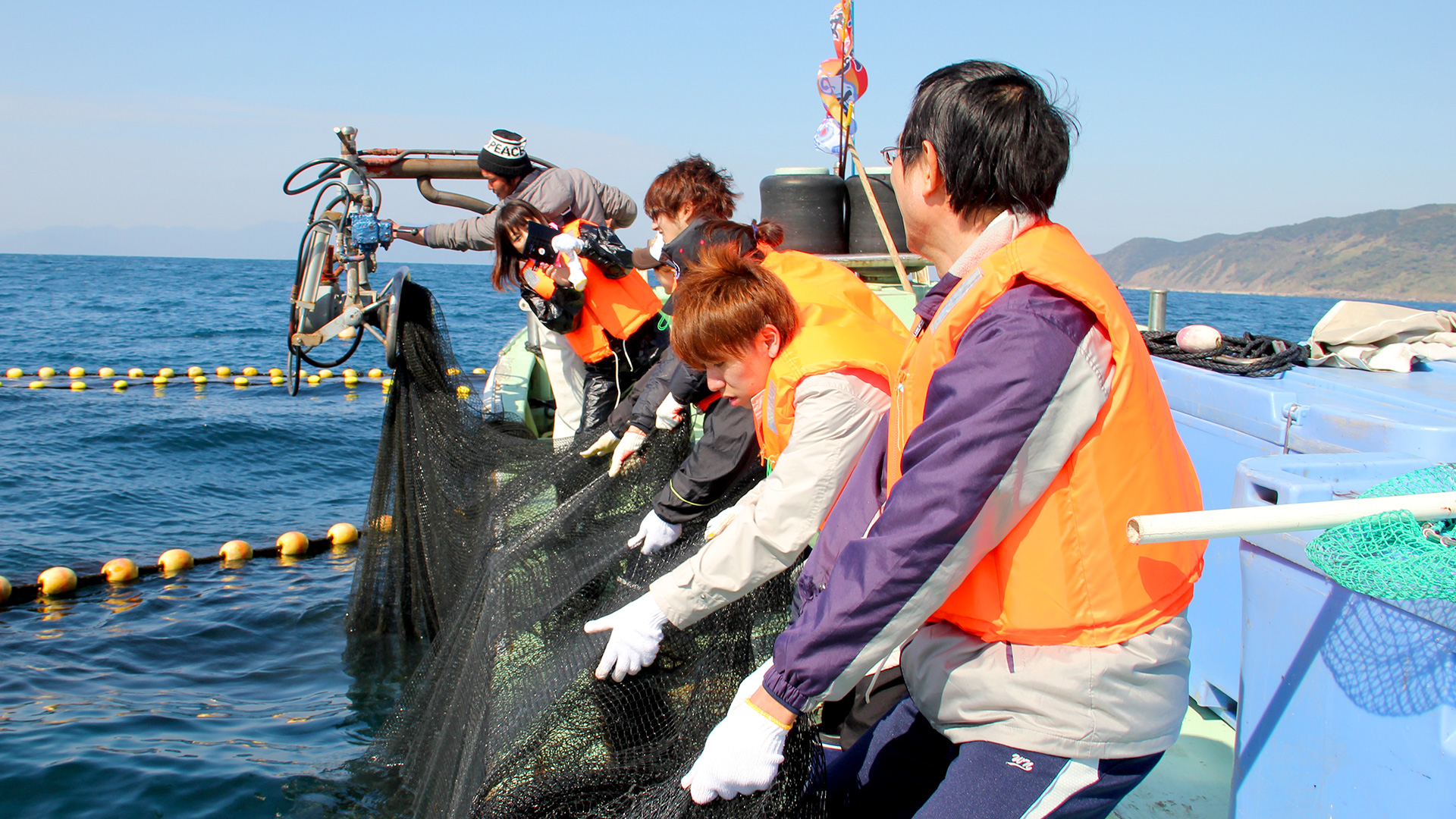 都井岬沖で漁師体験。ピチピチ魚介をその手でキャッチ! 0987-76-1093(海心) 串間市都井 Experience how fishermen do their jobs in the waters off Cape Toi. Catch super-fresh seafood with your own hands! Toi,Kushima-shi
