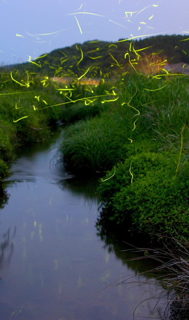 この景色は田舎ならでは!あたり一面かがやくホタルにうっとり。 0987-72-0479(串間市観光物産協会) 串間市本城 This is the sort of sight you’ll only find in the countryside! You’ll be captivated by the sight of flashing fireflies as far as you can see. Honjo,Kushima-shi