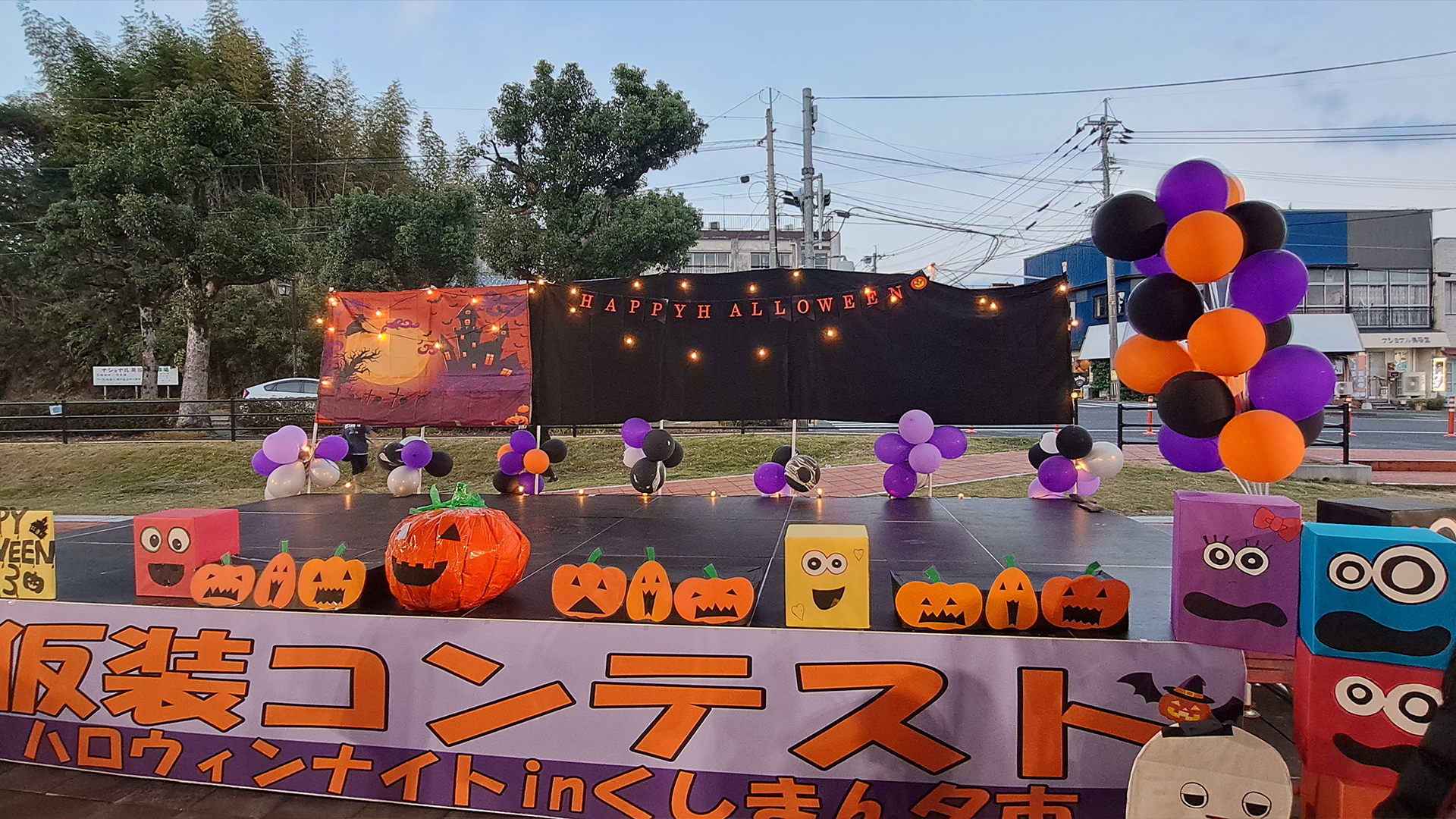 大人も子供も楽しむことができる仮装コンテストが道の駅くしまで開催されます。会場には多くの出店が並び、オリジナルの仮装に身を包んだ参加者で賑わいます。