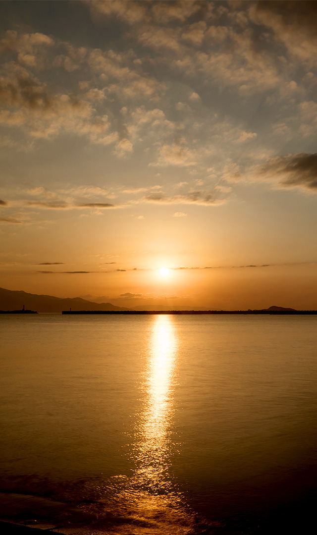 さえぎるものは一切なし。水平線に沈む夕日にうっとり。 0987-72-0479(串間市観光物産協会) 串間市高松 There’s nothing to block your view of the spectacular sunset at Nagahama. You’ll find yourself captivated by the spectacle of the sun slipping below the horizon. Takamatsu,Kushima-shi