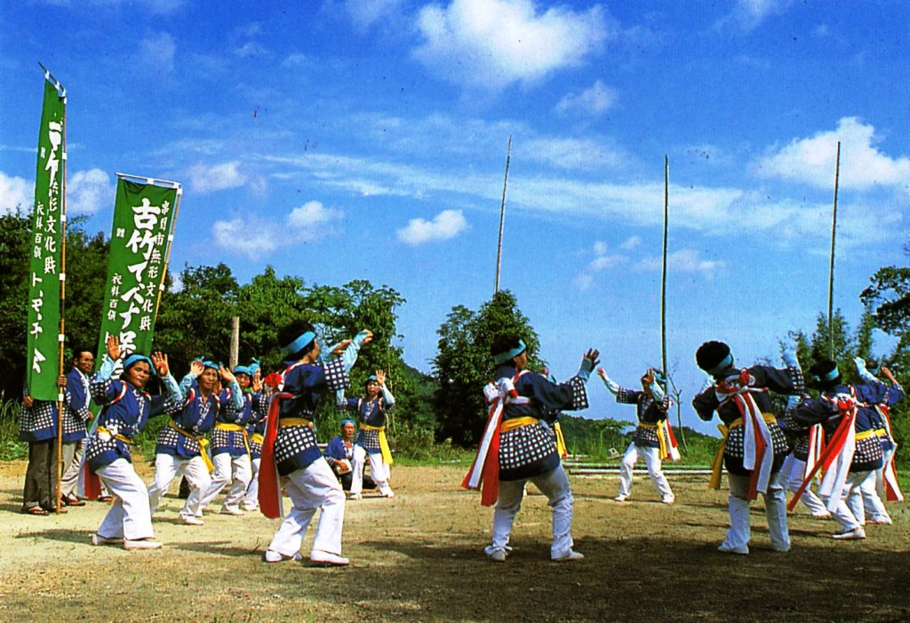 手で拍子をとりながらユーモラスに踊る、古竹伝統の踊り。 0987-72-1111(串間市役所生涯学習課) 串間市古竹 Participants in this traditional and humorous dance, which is performed in the city’s Furutake district, clap as they perform. Furutake,Kushima-shi