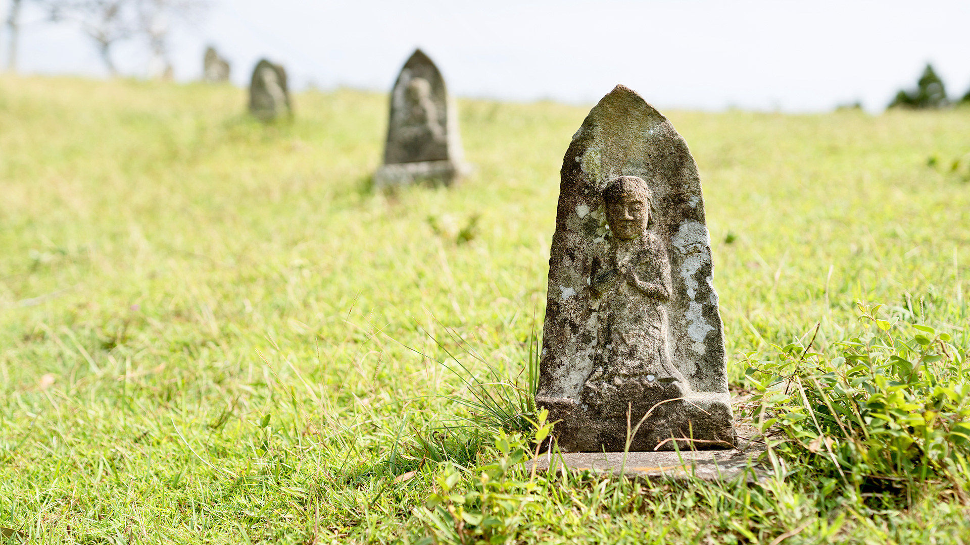 Visit this group of Jizo statues, which are arranged in a spiral pattern on Cape Toi grasslands.
